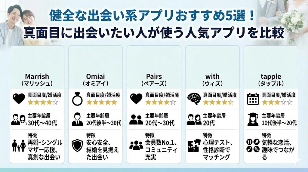 【真面目に出会いたい】健全なマッチングアプリ5選!